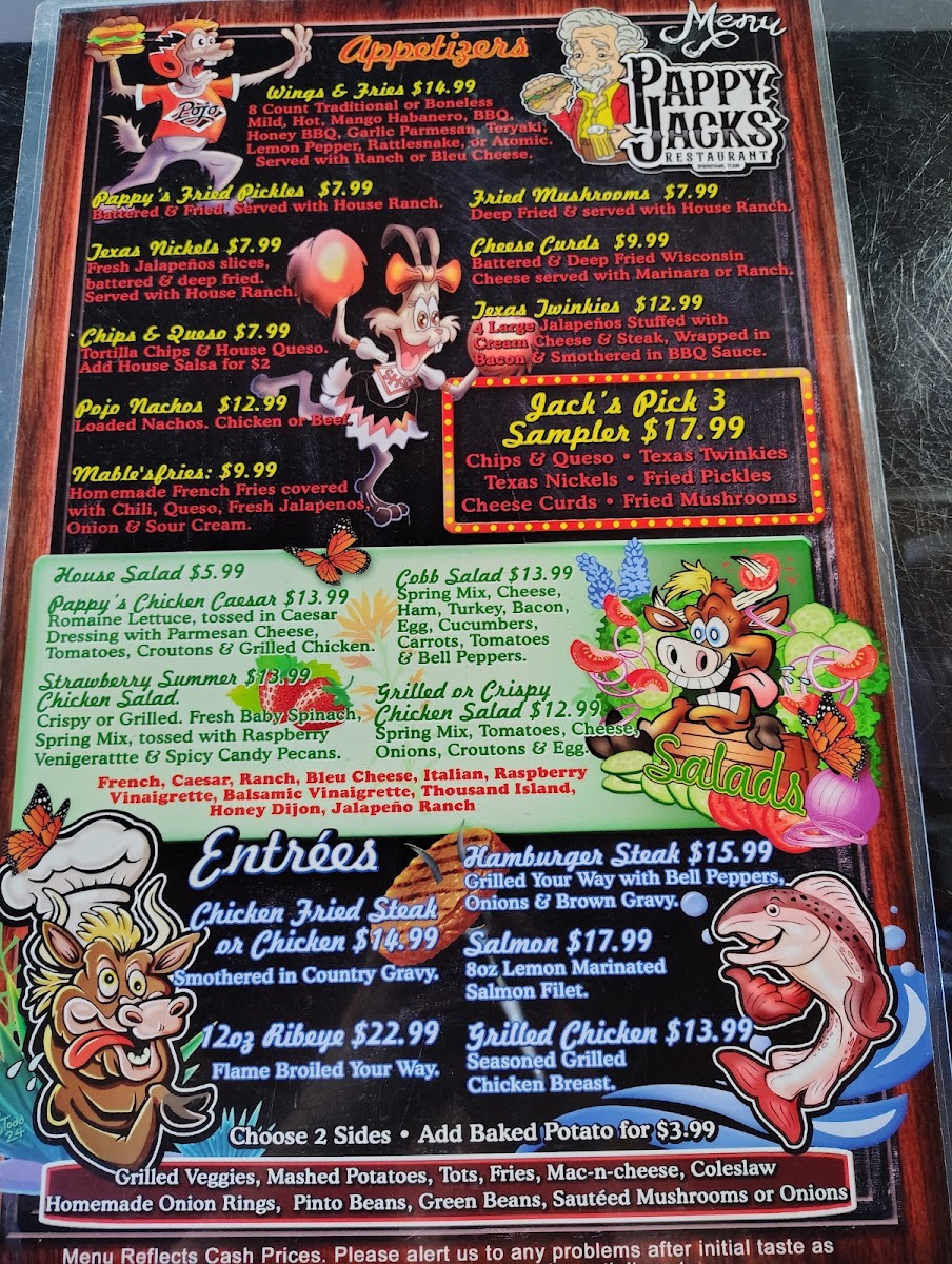 If you're in the mood for something truly satisfying, the Pappy Jack's Restaurant Menu is sure to hit the spot. Located at 301 Martin Ave in Springtown, TX, this spot offers a laid-back atmosphere perfect for a meal with family and friends. The menu is a blend of classic comfort food and exciting flavors that will leave you coming back for more. From hearty appetizers to flavorful main dishes, there's something for everyone here.